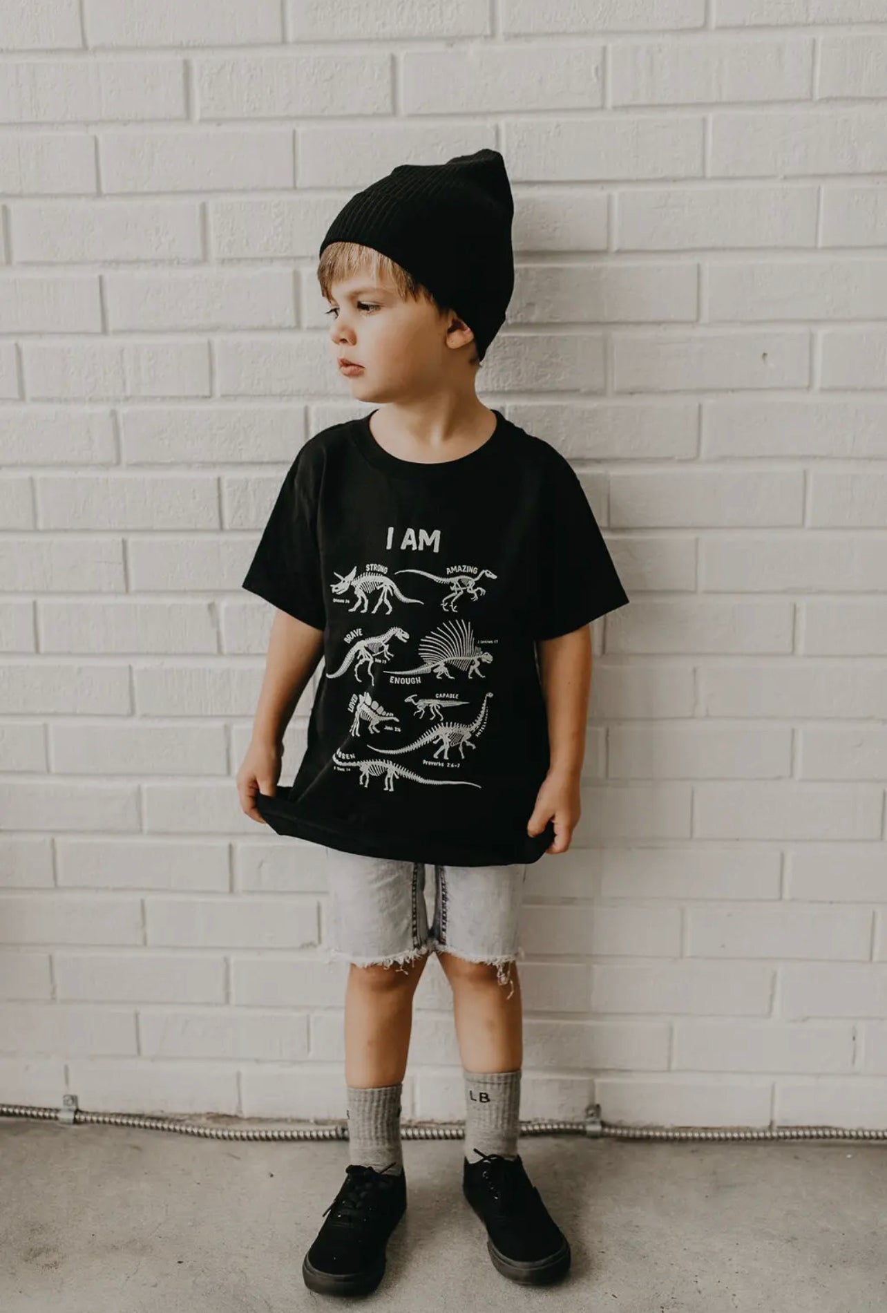 Our premium Dino Skeleton t-shirt is screen printed for durability and offers an inspiring affirmation in the glow-in-the-dark design. Encourage your little one to express themselves in style with this unique and durable item.