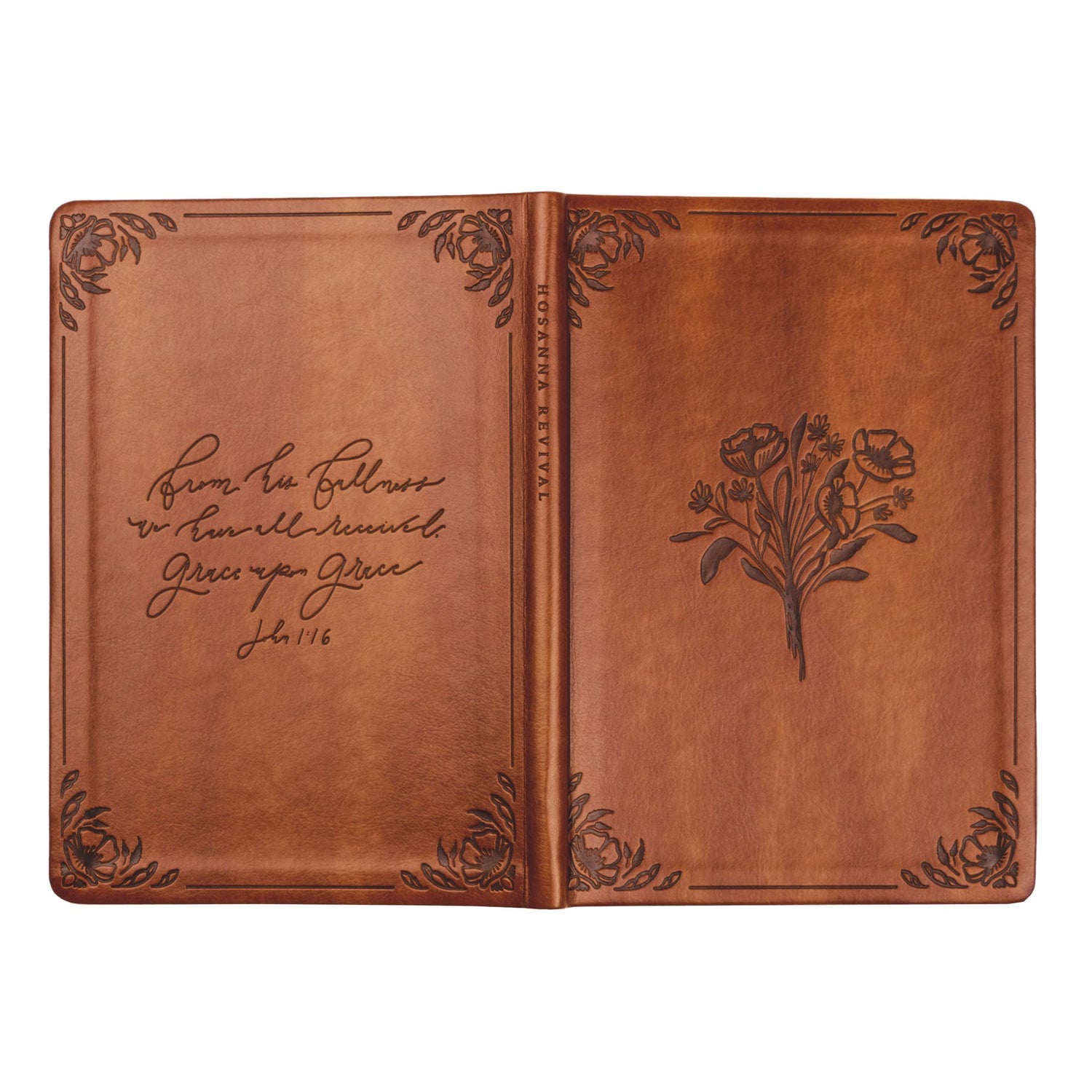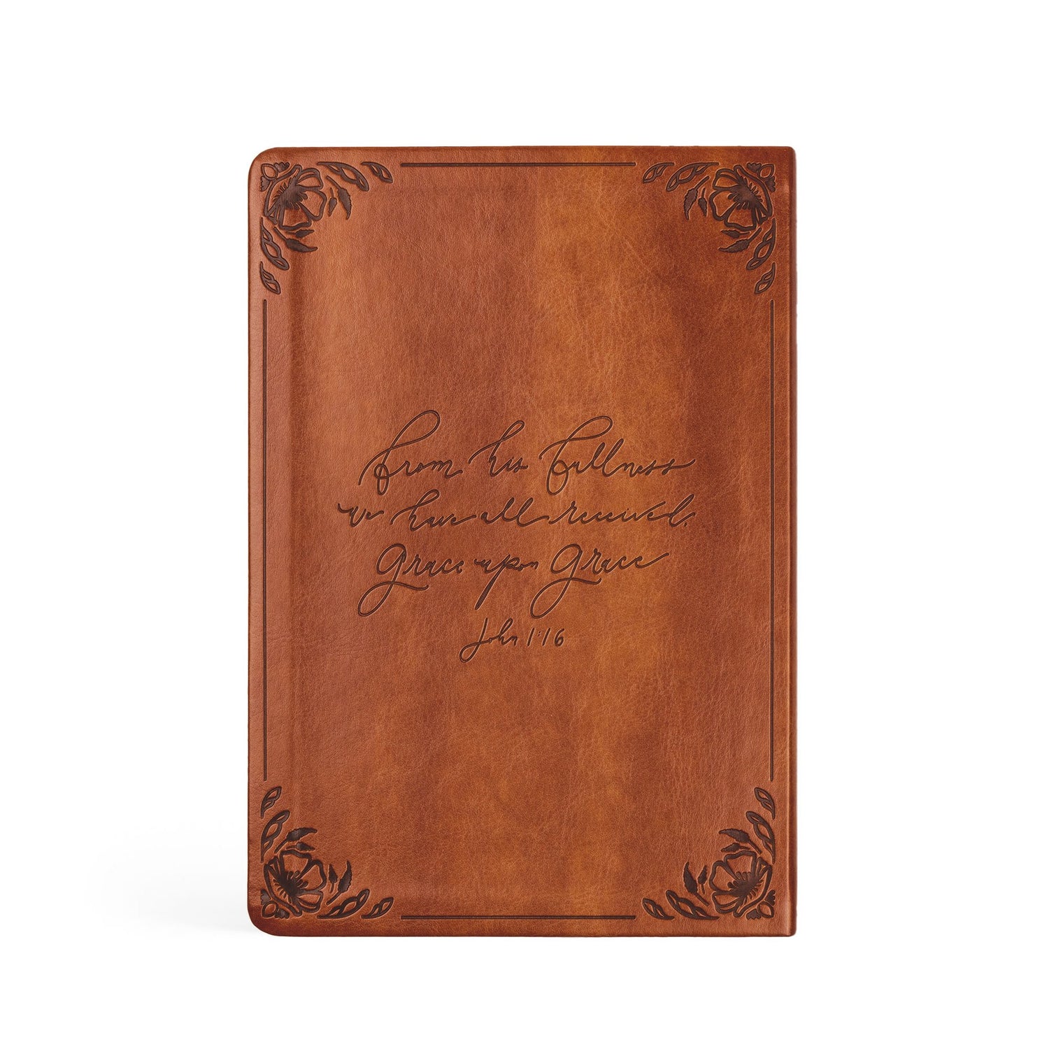 This notebook is inspired by the rich architecture and thriving gardens of Vienna, Austria. The front features a bouquet of flowers pressed into the soft leather-like cover, and the back features John 1:16 hand-lettered. This notebook has a flexible, durable soft cover. Available with either lined or dotted interior, we look forward to the day when this notebook is filled with your notes, dreams, and prayers. This notebook pairs perfectly with our CSB Vienna Notetaking Bible.