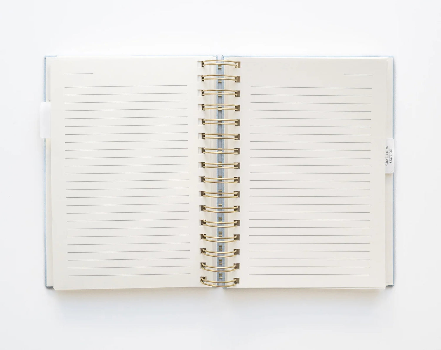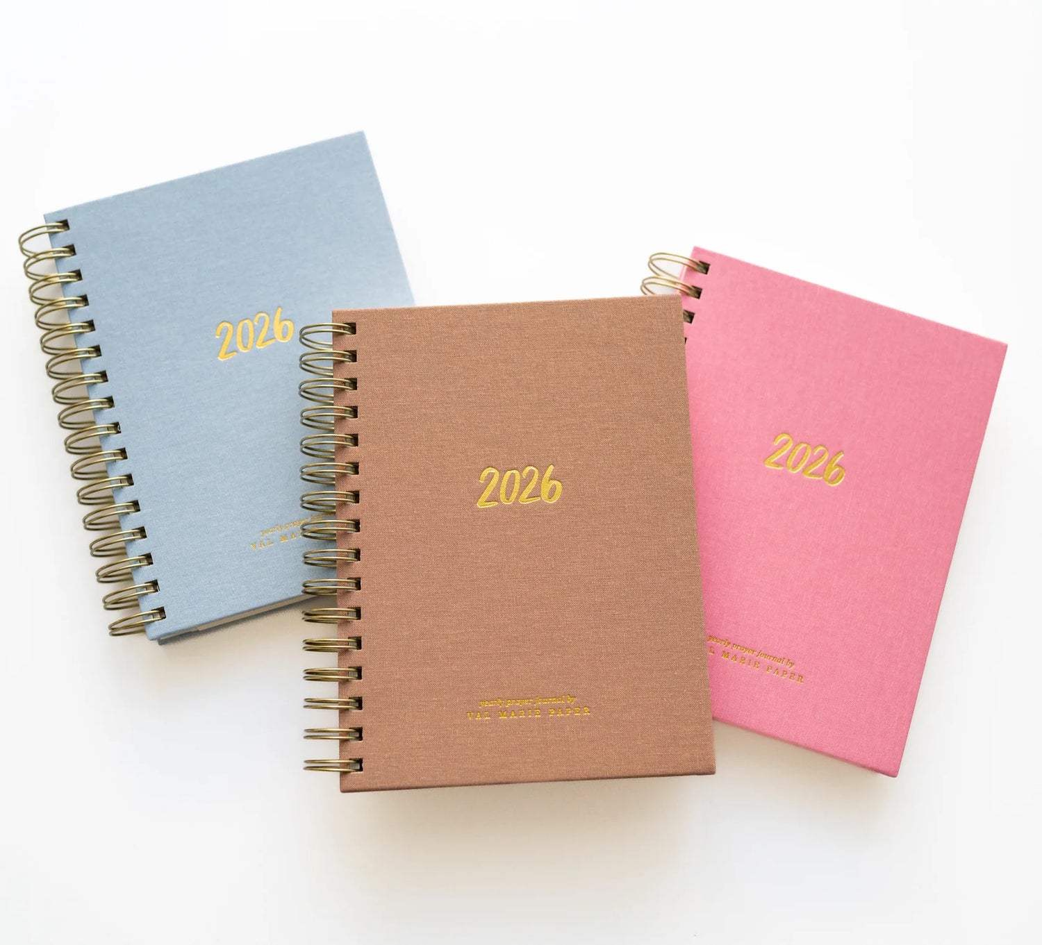 - 5.5” X 8” | Hardcover wrapped in 3 linen fabric options | Gold embossed | Three tabs | Lettering by Naomi Paper Co.
